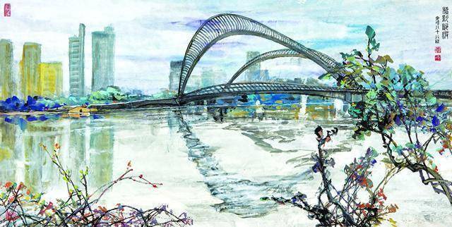《汾河新十二景》不只是对汾河景色的描摹,更蕴含着李夜冰先生对家乡的热爱与对时代发展的歌颂。透过这组作品,我们能看见传统与现代的碰撞融合,感受到艺术创新的独特魅力。李夜冰先生用彩墨为汾河谱写了一曲赞歌,也为中国画坛添上了一抹绚丽色彩。